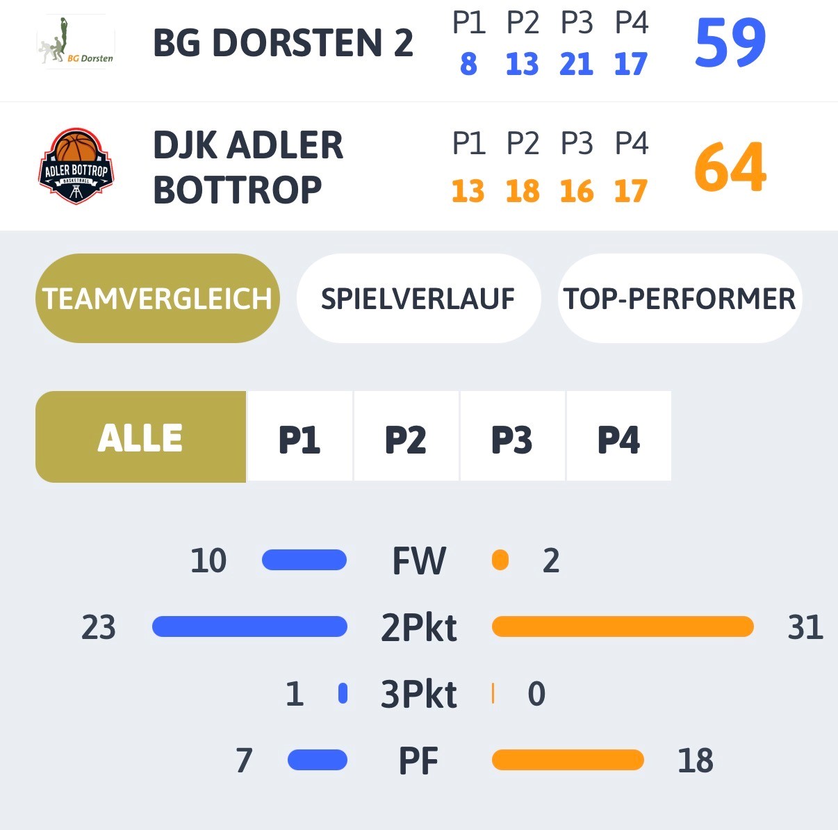 Spiel 04/06: Datteln vs Bottrop – 57:74